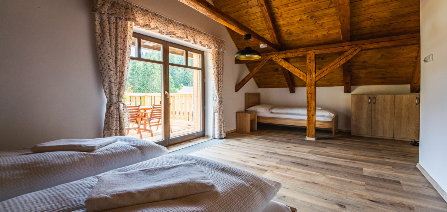 Plně vybavené apartmány zajistí pohodlí pro celou rodinu nebo skupinu přátel. Každý z čtyřlůžkových apartmánů má vlastní terasu, kde si můžete vychutnat ranní kávu s výhledem na přírodu.