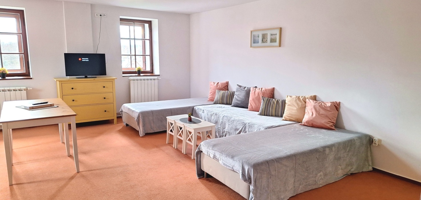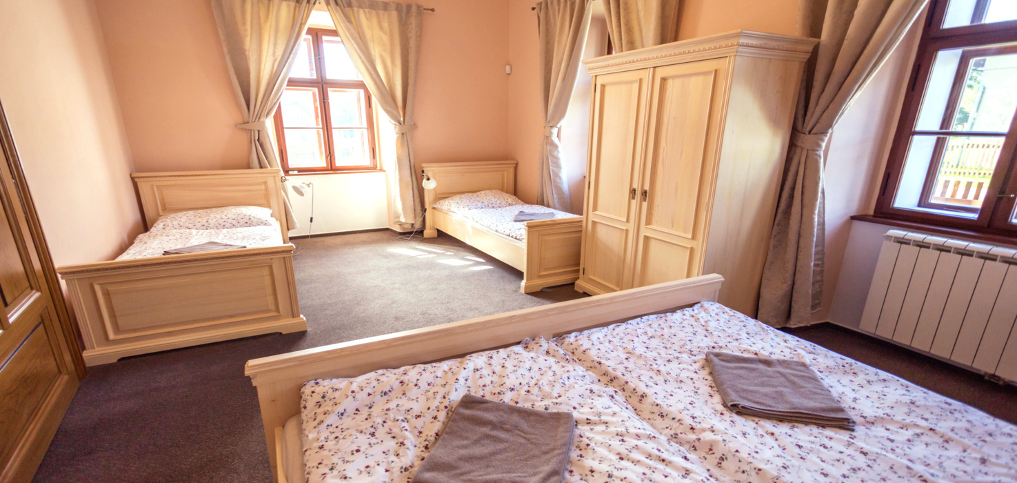 Nabízíme pokoje s koupelnou, kuchyňkou, Wi-Fi, parkování zdarma. Najdete u nás ideální ubytování pro teambuilding, rodinné pobyty i oslavy, firemní školení.